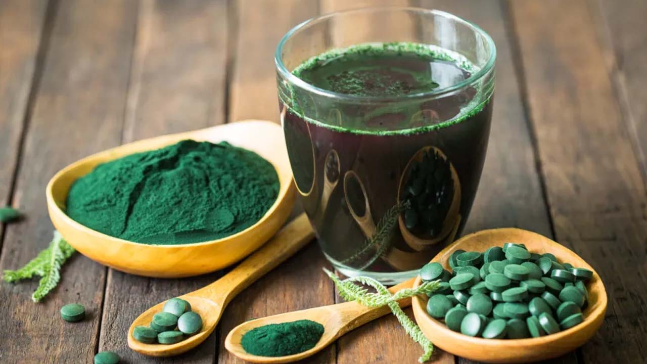 A blue-green algae (cyanobacteria) packed with nutrients, often consumed as a superfood powder or supplement.